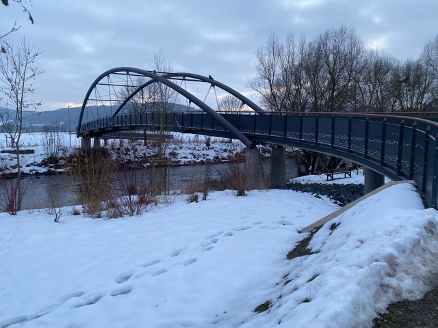 Die Werrabrücke etwa 1,5 Kilometer vor dem Ziel. Meine Yaktrax habe ich ausgezogen, denn sie drücken nach 6 Stunden doch etwas im Zehbereich. Im Ziel, endlich! Geschafft! Ohne Sturz! Welch ein Lauf! Alter Schwede! Nun ist Erholung angesagt! Auf einen Start morgen beim Haferberg-HasenmühleUltratrail werde ich verzichten!